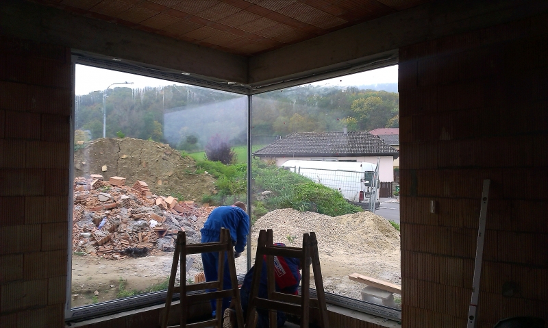 Novostavba rodinný dom-hliníkové okná, HST dvere a bezrámový veľký sklený roh